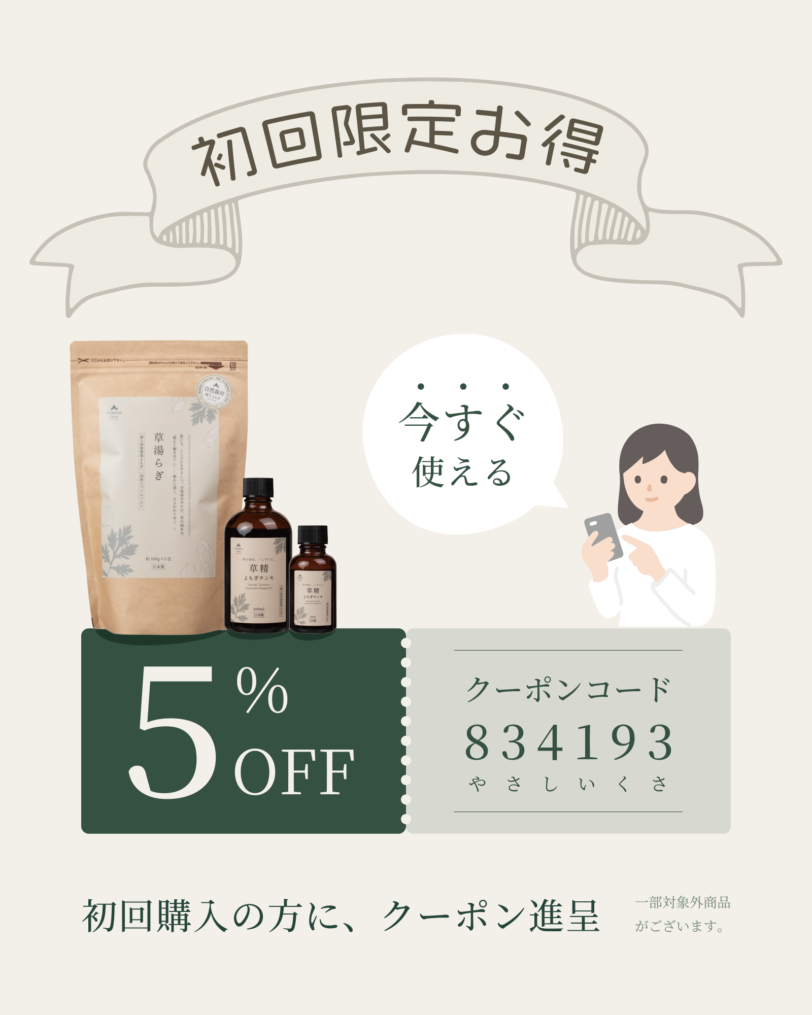 クーポン番号:834193(やさしいくさ)