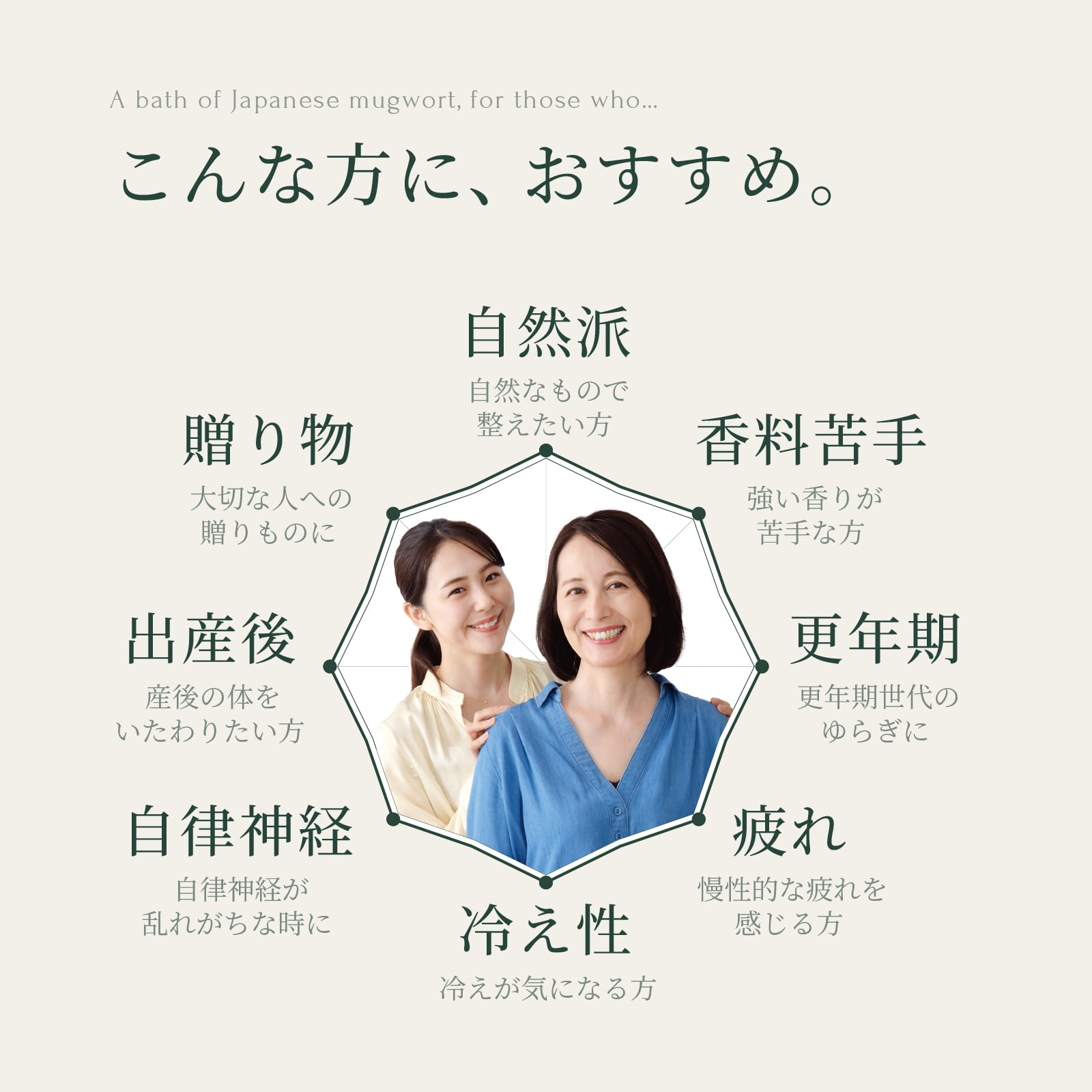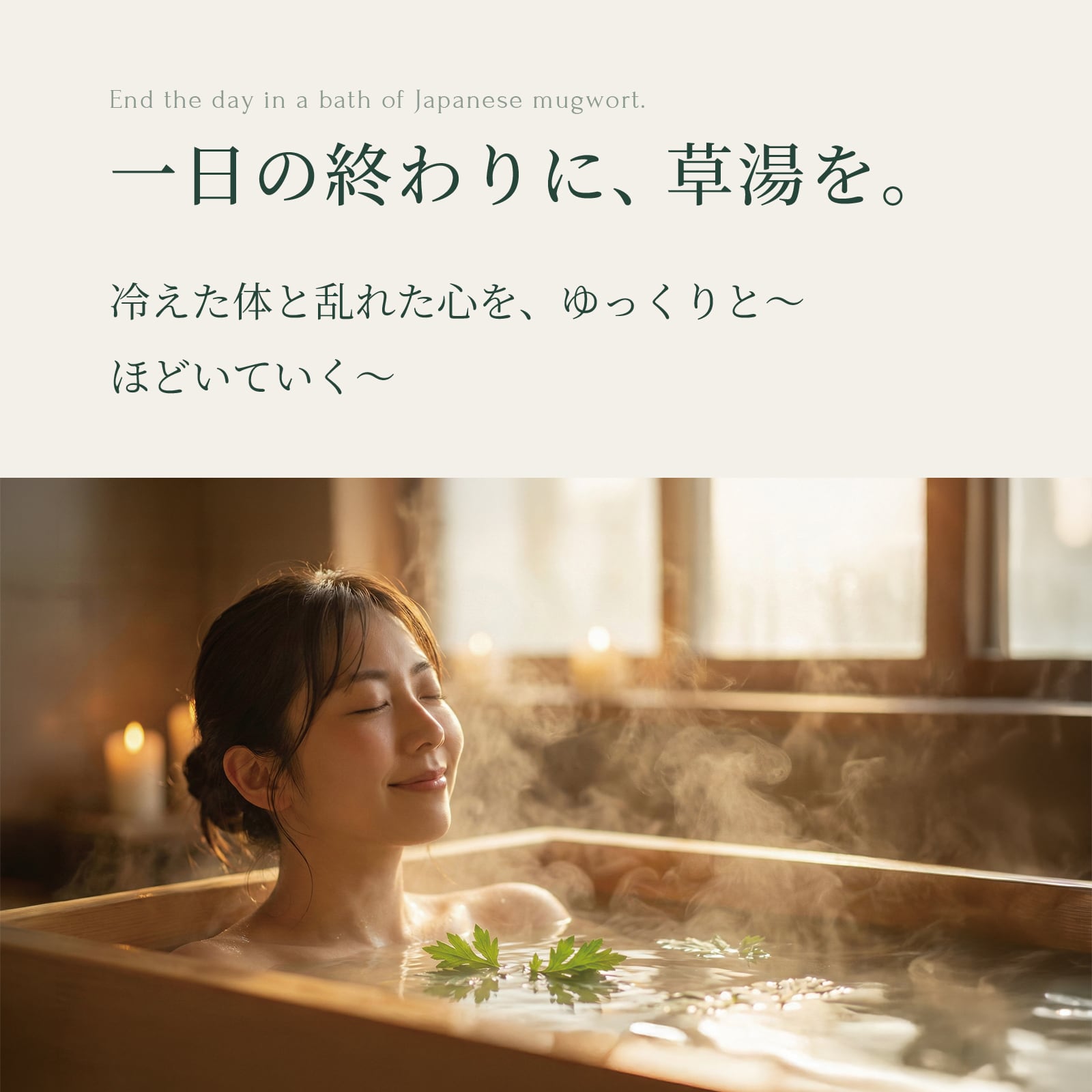 慌ただしい毎日の終わりに、静かな時間を整えるためのよもぎの湯です。