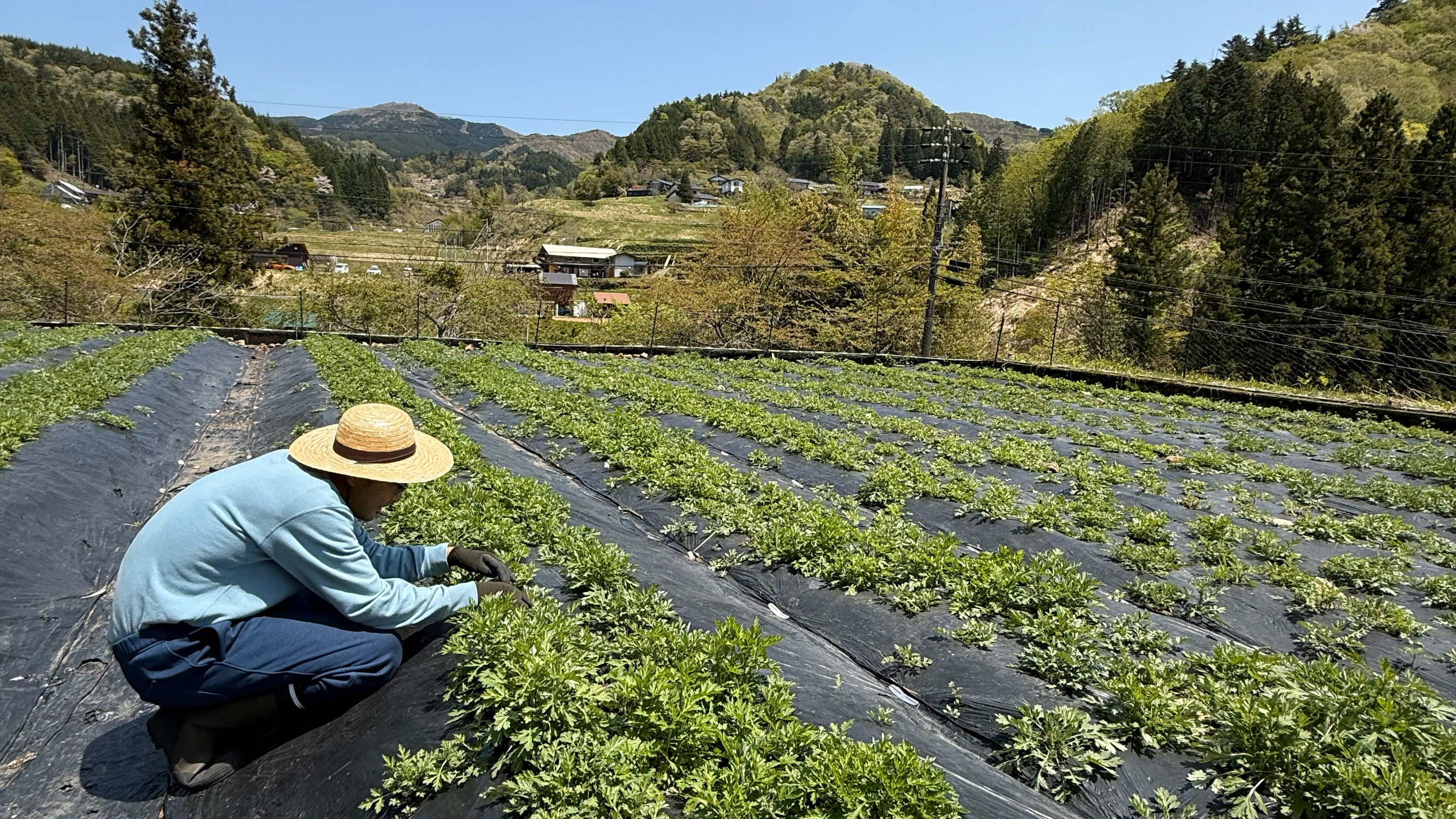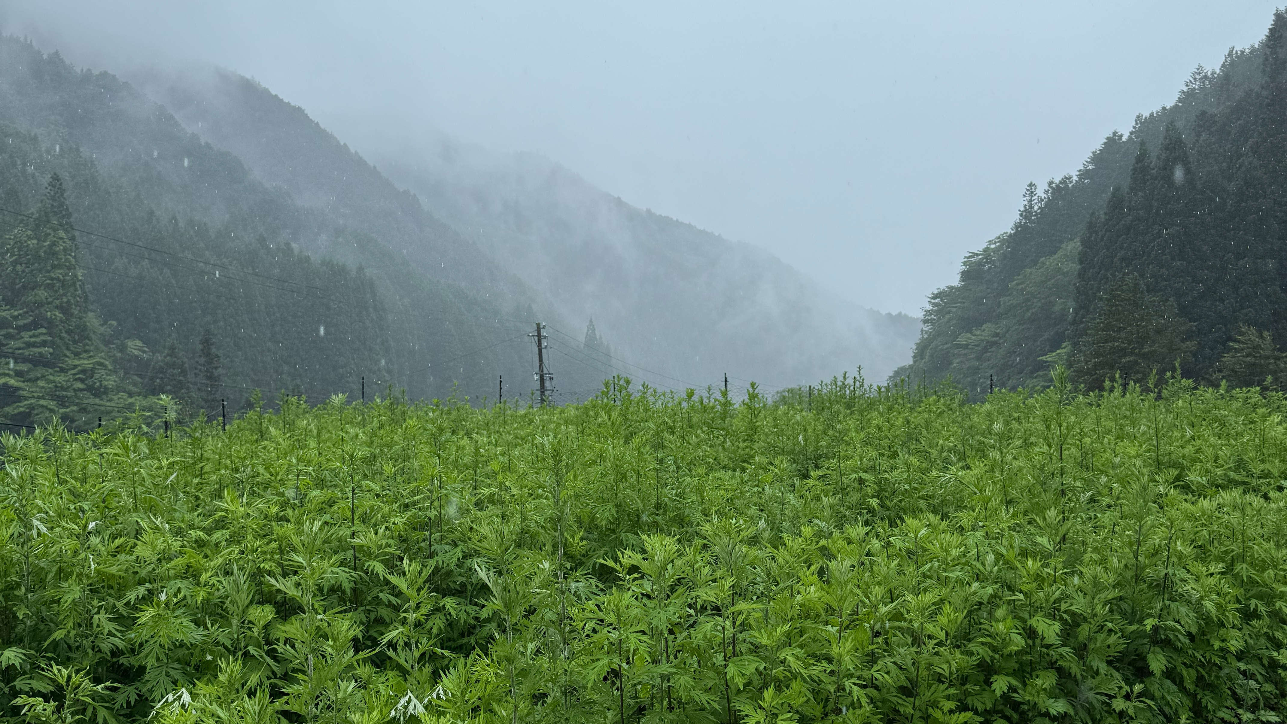 ❶ 郡上・標高630m 山あいの畑で育つよもぎ