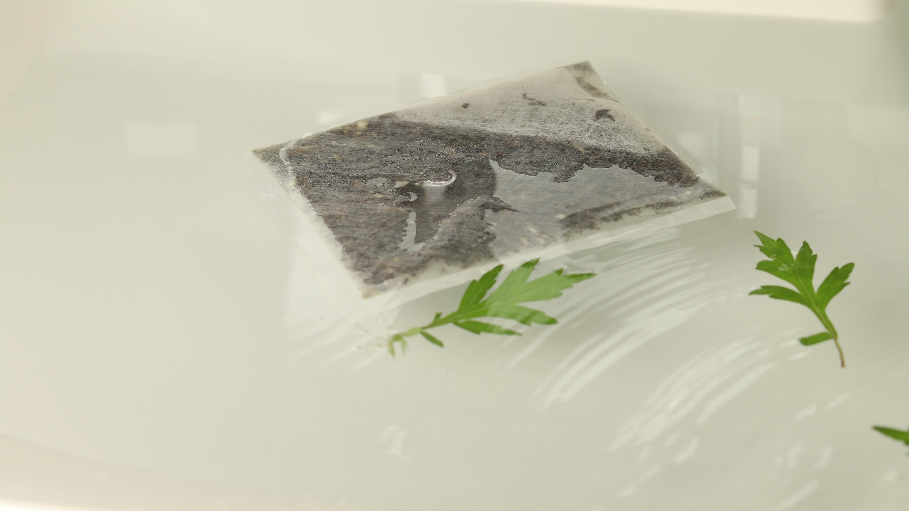 A.3:食品グレードの不織布パックに包んでいるため、葉が浴槽に散ることはありません。
