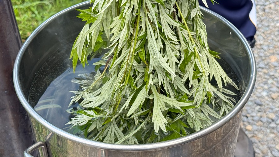 湯の中でよもぎそのものが静かにほどけ、ふわりとやさしい草の香りが広がります。
